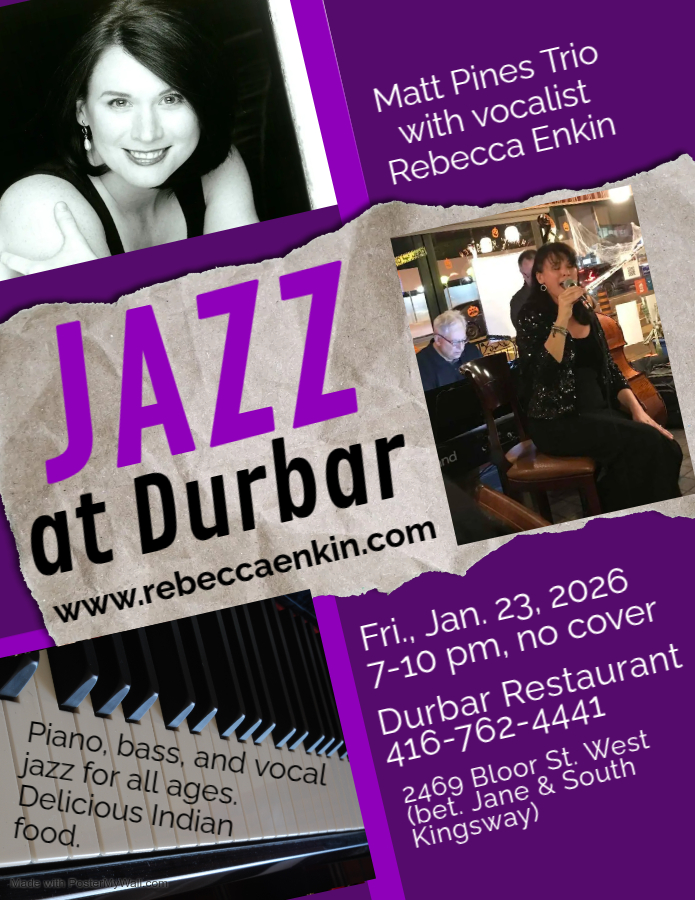 For the best listening experience, make sure to reserve a table at the front of the restaurant for 6:30 pm, in order to get your dinner order in before the music starts at 7:00 pm. There are some tables with a blocked view–ask for a table near the music. Menu at www.durbar.ca. Reserve at 416-762-4441. No cover.