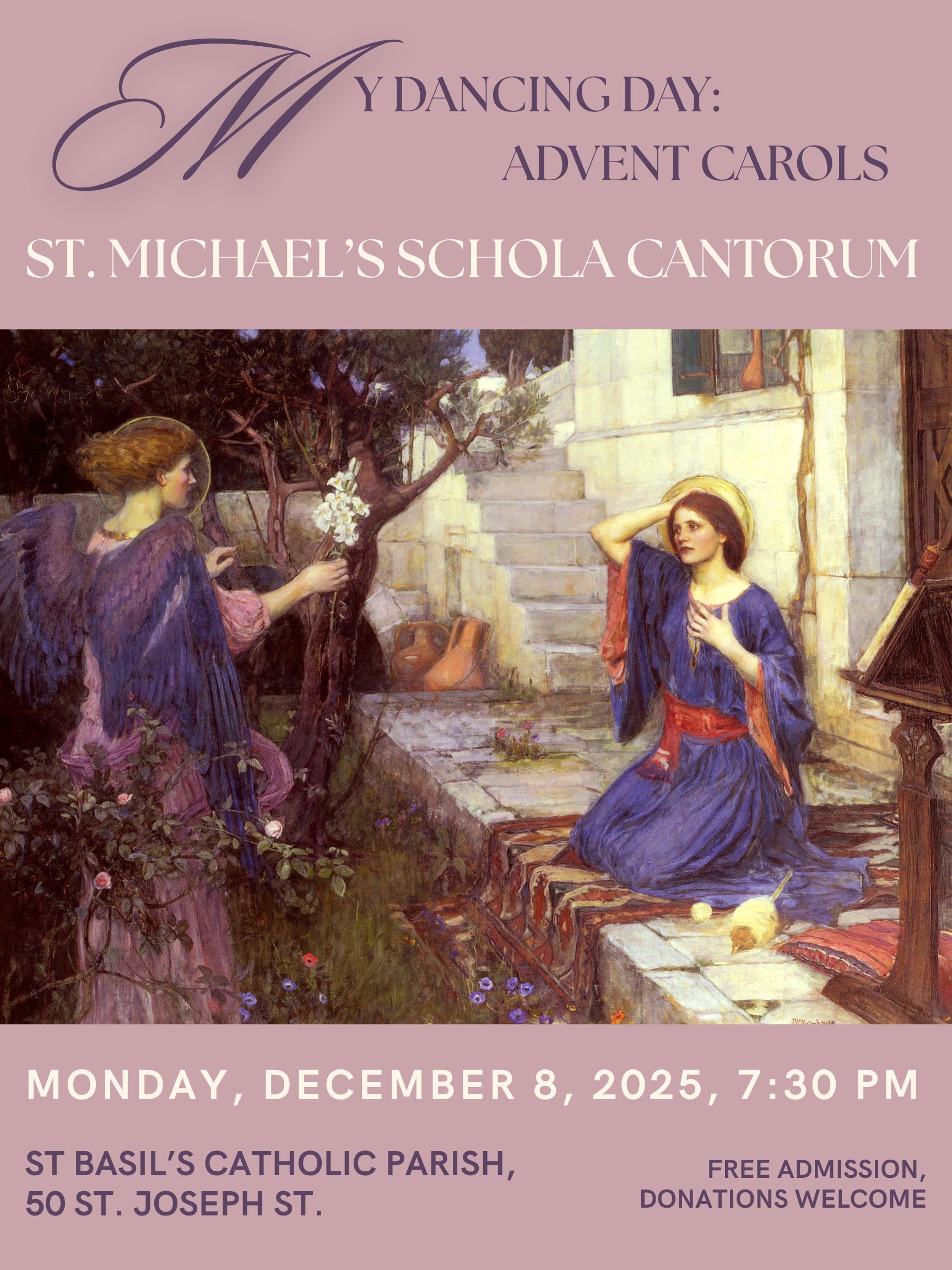 We have a lovely and varied program of a cappella chant and choral music for Advent with some dashes of oboe here and there. Website St. Mike’s Schola Cantorum